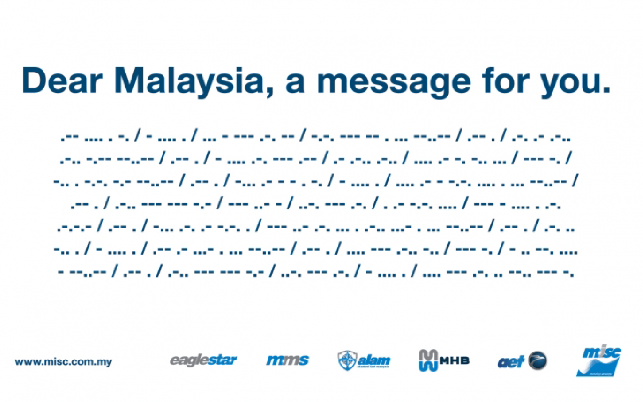 MISC taps out print ad with morse code message for Merdeka Day